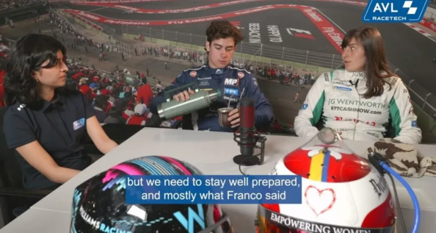 Colapinto llegó hoy a boxes tomando mate. El piloto argentino afrontará su segunda carrera oficial de Fórmula 1 en el circuito callejero de Bakú, Azerbaiyán.