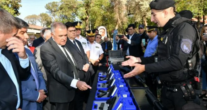 El gobernador Osvaldo Jaldo presidió en la jefatura de Policía un acto donde se realizó la entrega de insumos, armamento y elementos de protección balística.