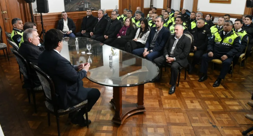 Desde las 7 horas de este lunes el gobernador Osvaldo Jaldo encabezó el encuentro con la Policía de Tucumán en Casa de Gobierno.