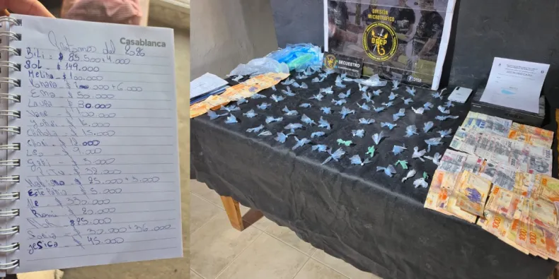 El allanamiento tuvo lugar en un domicilio ubicado en las inmediaciones de la avenida Las Heras al 4400, por orden del Juzgado de Garantías Nº 5 y a solicitud de la Fiscalía Antidrogas Nº 1. Durante la requisa, los efectivos policiales hallaron pruebas contundentes de la actividad comercial ilícita: 76 envoltorios de cocaína ya fraccionados para la venta, un "bochón" de mayor tamaño, casi 200 mil pesos en efectivo, balanzas improvisadas y anotaciones que detallarían las transacciones de este negocio prohibido.