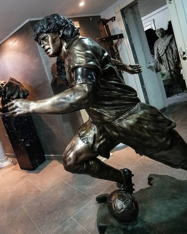 La estatua, hecha por el artista italiano Domenico Sepe, es dinámica y tiene a Pelusa dando un paso hacia adelante.