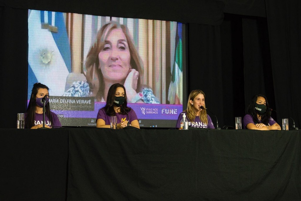 Julieta Goycoechea, vicepresidenta de la FUNE explica que el trabajo para la presentación oficial de la app VNQ “Vivas nos Queremos” se realizó “plenamente en conjunto entre la Franja Morada Regional Nordeste y la FUNE que nos cedió la posibilidad de trabajar con la aplicación”.