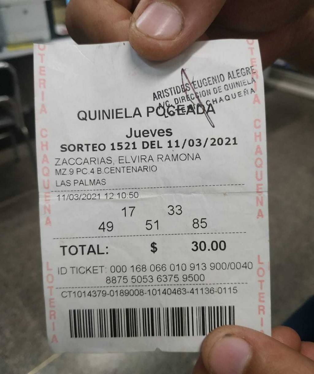 “Es un sueño esto que estoy viviendo”, dijo el ganador al momento de presentarse en las oficinas de Lotería Chaqueña con el ticket impreso con los números ganadores: el 17, 33, 49, 51 y 85.