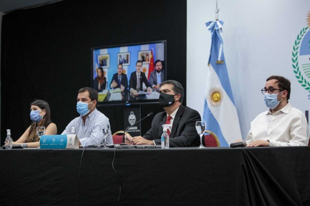 El gobernador Jorge Capitanich mantuvo en la mañana de este viernes un encuentro, vía videoconferencia, con el embajador argentino en la República Popular China, Sabino Vaca Narvaja, a fin de avanzar en cuatro temas prioritarios de una agenda bilateral de cooperación en cuestiones de ciencia, tecnología, ambiente, producción, empleo y exportación.