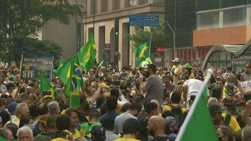 Con banderas de Brasil y al grito de “queremos trabajar”, los manifestantes les pidieron a las autoridades paulistas dar marcha atrás luego de la declaración de la llamada “fase de emergencia”, que rige desde el viernes y se extenderá hasta el 30 de marzo.