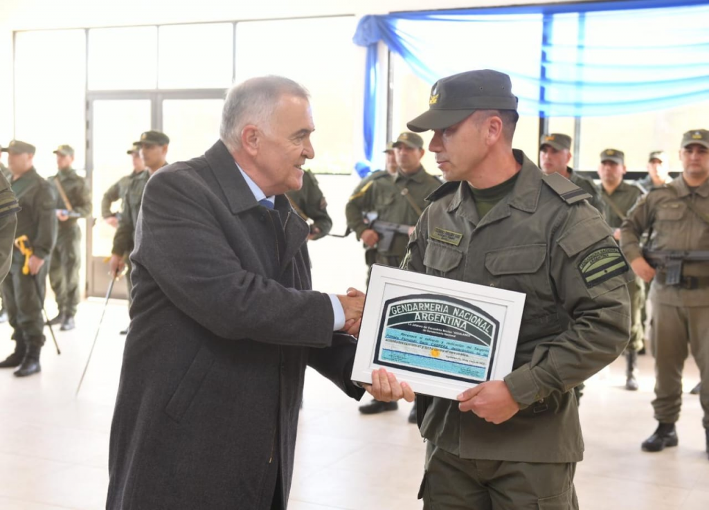 Cané explicó: “agradezco la visita del gobernador en un nuevo aniversario de la creación del Escuadrón Núcleo de Aguilares.  Me es grato estar aquí acompañando a los gendarmes que están bajo mi responsabilidad” y contó que se hizo una formación castrense para mostrar a los componentes de la fuerza y su equipamiento para la lucha de diversos delitos.
