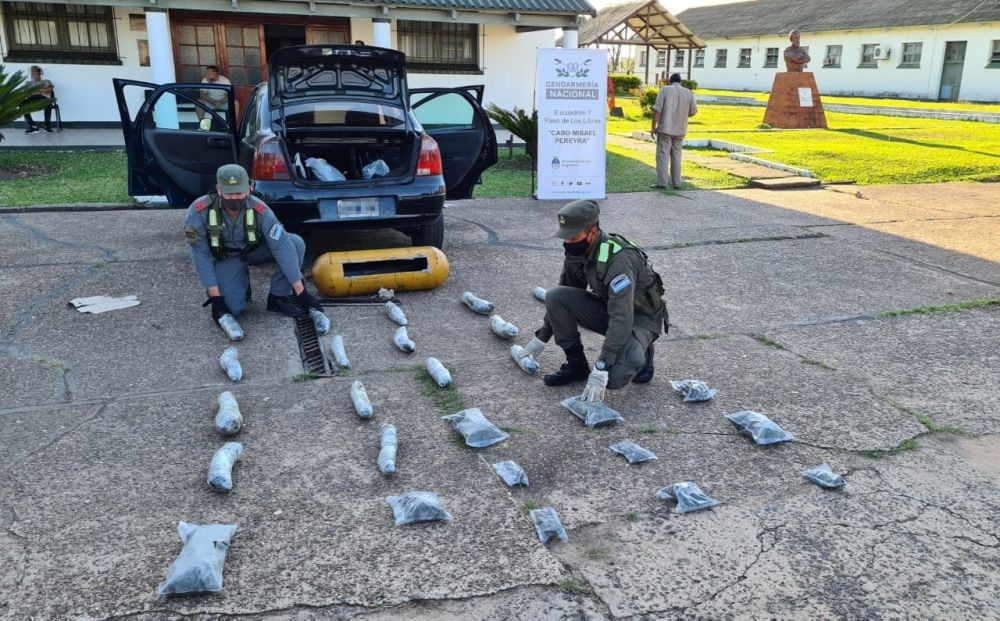 La carga fue detectada cuando al inspeccionar el baúl del automóvil se observaron restos de masilla y signos de que el tubo fue recientemente modificado. La droga estaba distribuida en 28 paquetes.