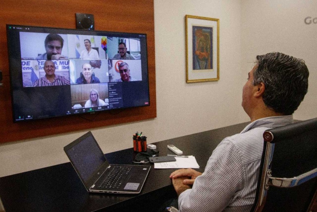 El gobernador Jorge Capitanich mantuvo una reunión virtual con la intendenta de Charata, María Luisa Chomiak y los intendentes de Las Breñas y Villa Ángela, Víctor Machuca y Adalberto Papp, respectivamente, para coordinar acciones preventivas que permitan administrar los contagios en virtud del aumento verificado en la última semana.