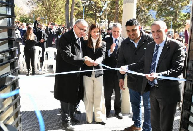 El gobernador, Osvaldo Jaldo, junto al presidente de la Corte, Daniel Leiva, recorrieron el remozado edificio que prestará un servicio clave para la comuna del valle de Tafí.