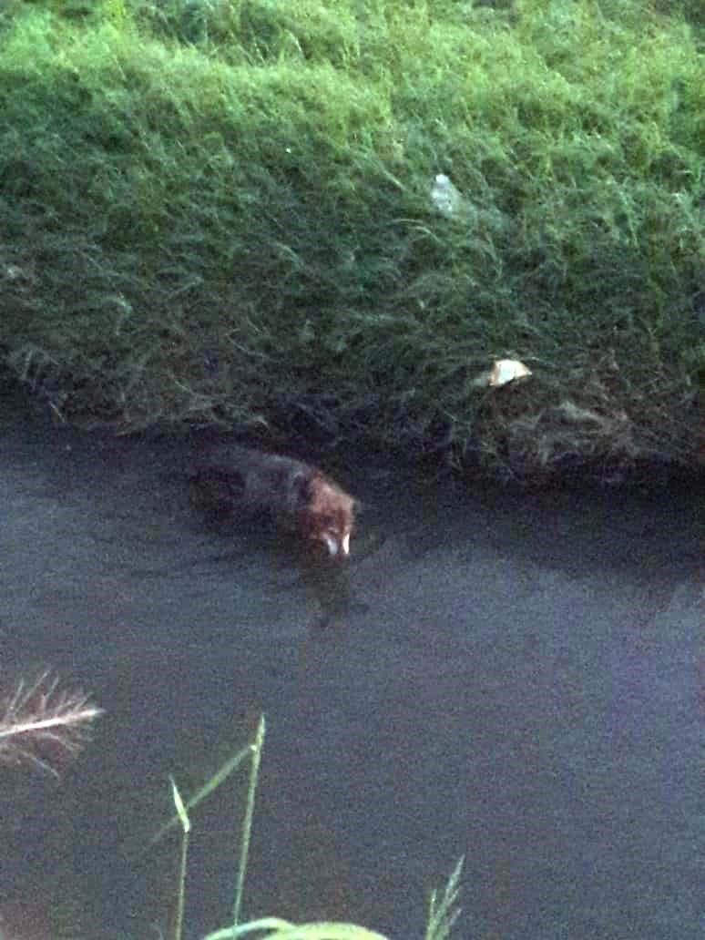 Ante ello se dirigieron al lugar, donde observaron al animal, el cual estaba siendo arrastrado por la corriente.