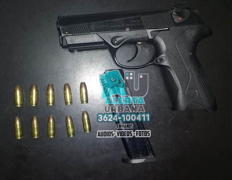 Policías secuestraron una pistola Beretta de 9 milímetros cargada y 10 cartuchos del mismo calibre.