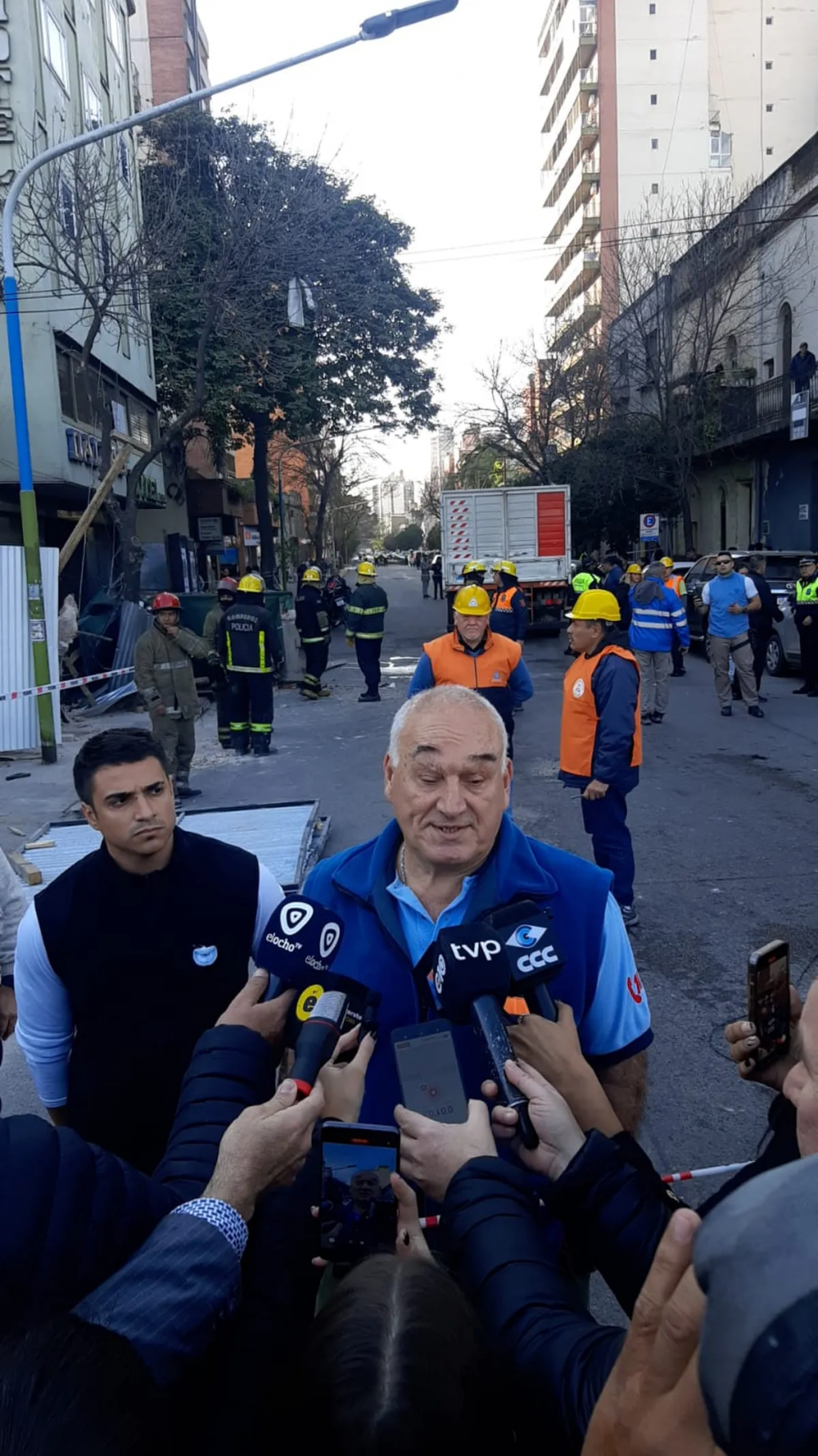 Francisco Barreiro, director de Emergencias del Sistema Provincial de Salud (SIPROSA), habló con los medios de comunicación, luego del derrumbe que se registró esta mañana en un edificio en demolición ubicado en calle Corrientes y Catamarca, en San Miguel de Tucumán, a metros de Plaza Alberdi.