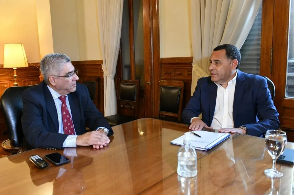 El ministro de Gobierno y Justicia, Regino Amado, junto con el ministro de Economía, Daniel Abad, comienzan la ronda de negociaciones paritarias.
