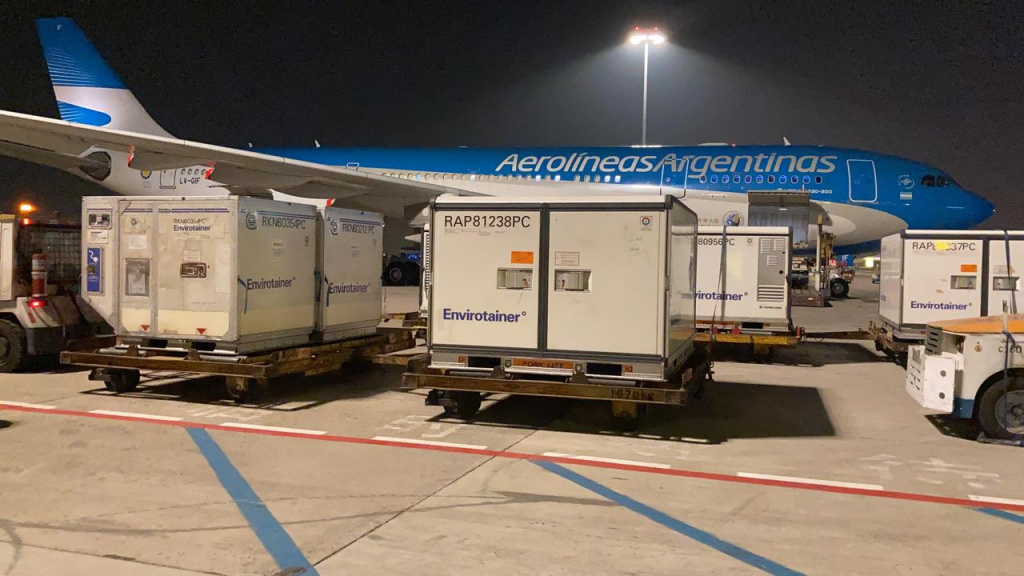 El gobierno nacional prepara dos viajes a China para buscar vacunas Sinopharm. El primer vuelo de Aerolíneas Argentinas saldría este viernes y llegaría el domingo con un millón de dosis. El segundo saldría el siguiente viernes y llegaría el domingo 2 de mayo, con el otro millón. Las fechas y horas están en planificación, pero la llegada de los dos millones de vacunas está confirmada.