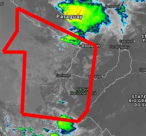 Se espera que durante la noche de este viernes y madrugada del sábado lluvias y tormentas se formen dentro del área remarcada, no se descarta que adquieran intensidad fuerte con abundante caída de agua, fuertes descargas atmosféricas, fuertes ráfagas de vientos de +50 km/h y ocasional caída de granizo. Luego de esto se espera un descenso de temperaturas en toda la región.