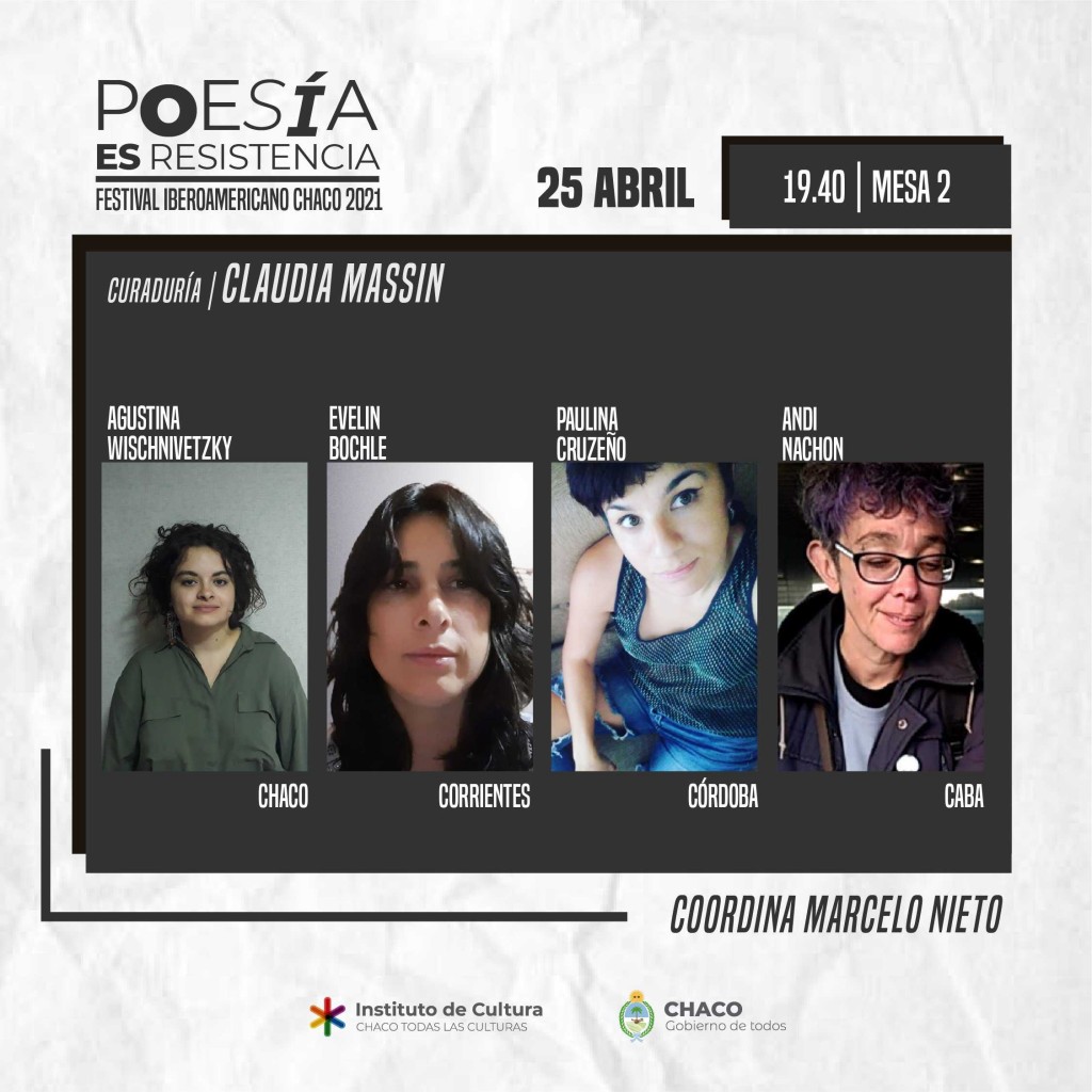 Este domingo 25 de abril desde las 19 se vivirá la última jornada del Festival Iberoamericano de Poesía Chaco 2021, organizado por el Instituto de Cultura del Chaco (ICCH) desde su Departamento de Letras, con acompañamiento de la Fundación del Libro y la Cultura. Las actividades del Festival se ven gratuitamente en la plataforma www.poesiaesresistencia.chaco.gob.ar, se transmiten en vivo por el Canal Chaco TV y se pueden seguir en el Instagram @festival_poesia.