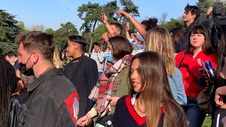Una discoteca al aire libre sin máscaras ni distanciamiento social: así reflejaban algunas imágenes de jóvenes que subían a sus redes sociales para compartir el momento. Poco después del inicio de la fiesta a cielo abierto, los guardias del parque intervinieron con calma para poner fin a la reunión ilegal. Los participantes se dispersaron justo antes del inicio del cierre del parque.