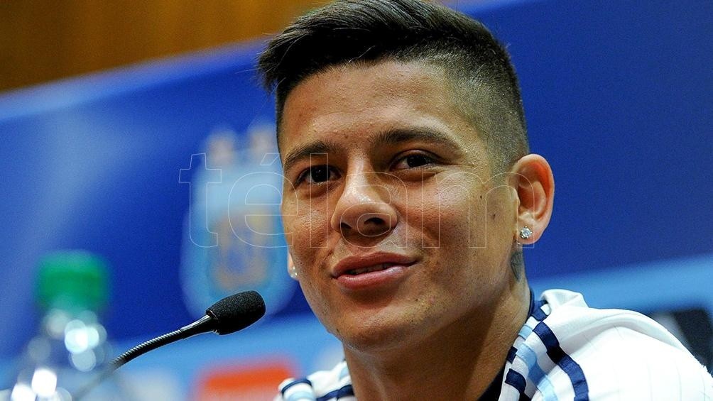 En la vereda del lugar en donde se hizo los estudios, Marcos Rojo pudo tomar contacto con las pulsaciones del "mundo Boca".