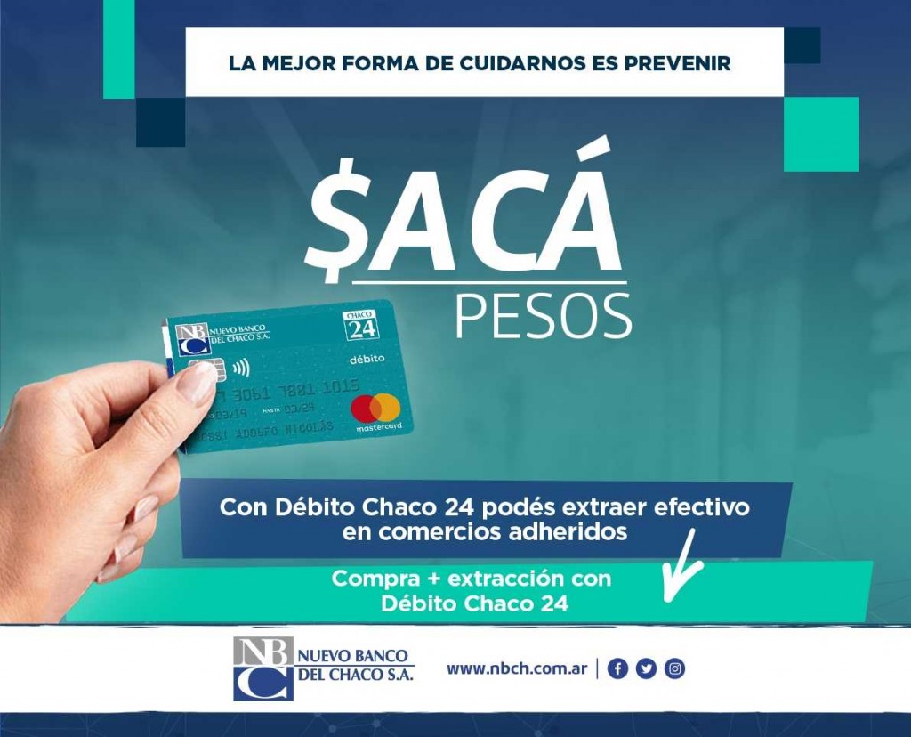 El uso de tarjeta de débito Chaco 24, la plataforma de home banking y billetera digital permite disponer de los haberes acreditados en cuentas bancarias sin necesitar efectivo y tener que concurrir a un cajero automático para realizar una extracción. Son alternativas más seguras, gratuitas y disponibles 24 horas, que además reducen los riesgos de contagio de coronavirus.