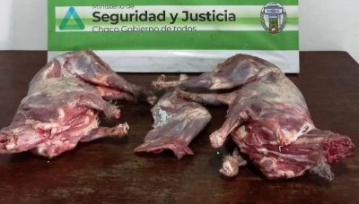 En las bolsas llevaban dos chivos de 12kg aproximadamente y una paleta del mismo animal; todos ellos ya faenados que fueron secuestrados ya que no pudieron acreditar el origen ni propiedad de dichos animales.