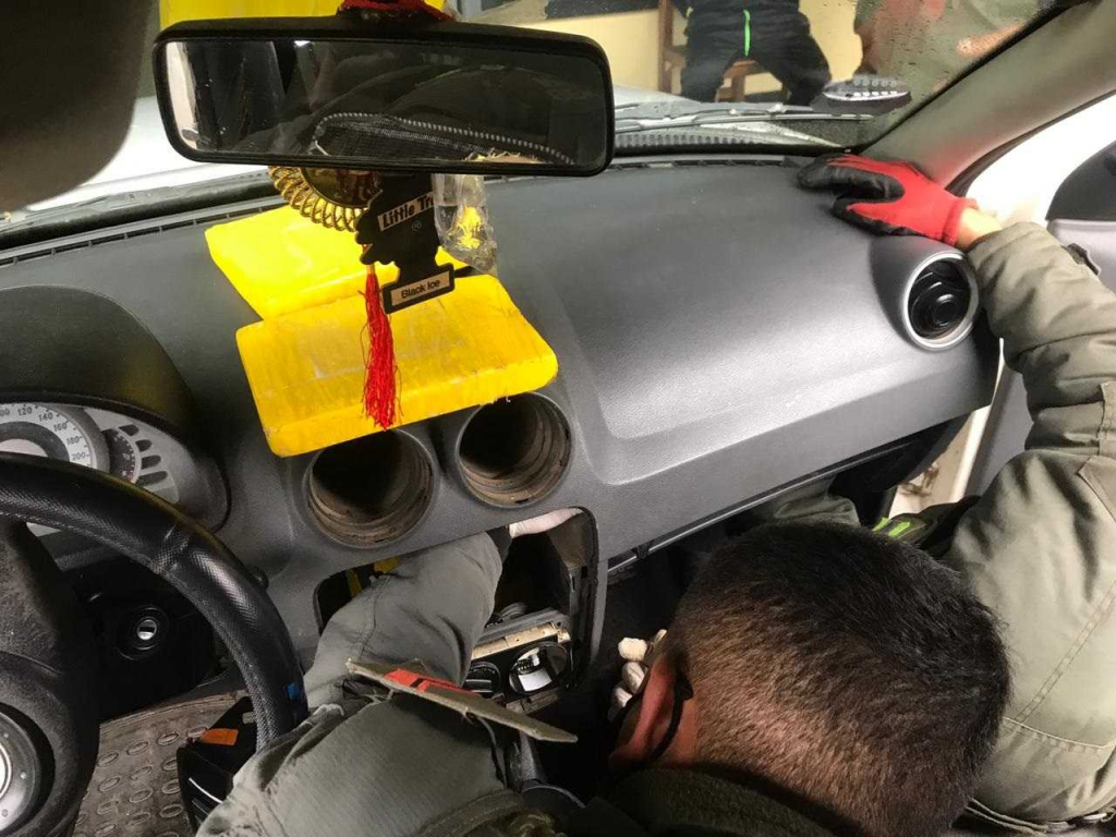 Ante esa situación, en presencia de testigos, los uniformados realizaron una inspección más exhaustiva que derivó en el hallazgo de siete paquetes rectangulares, los cuales estaban ocultos detrás del estéreo y en el interior de la guantera. La prueba de campo Narcotest arrojó como resultado positivo para cocaína con un peso total de 7 kilos 170 gramos. El Juzgado Federal 1 de Santiago del Estero dispuso el decomiso del estupefaciente y del rodado, como así también, la detención del involucrado.