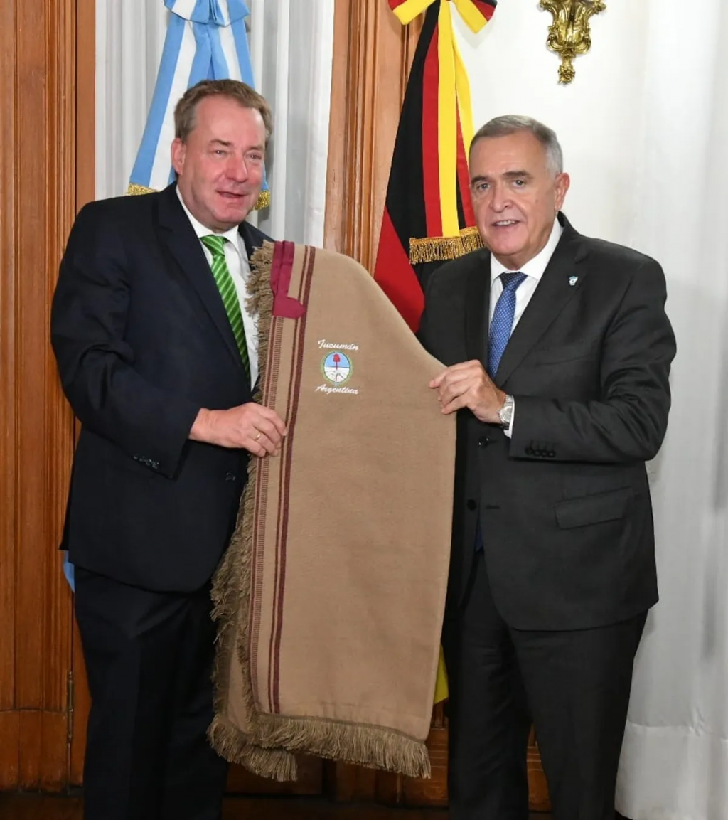 En un encuentro protocolar que tuvo lugar este martes en Casa de Gobierno, el gobernador, Osvaldo Jaldo, recibió al embajador de la República Federal de Alemania en Argentina, Dieter Lamlé, que arribó a la provincia para recorrer el suelo tucumano y mantener diversos encuentros.