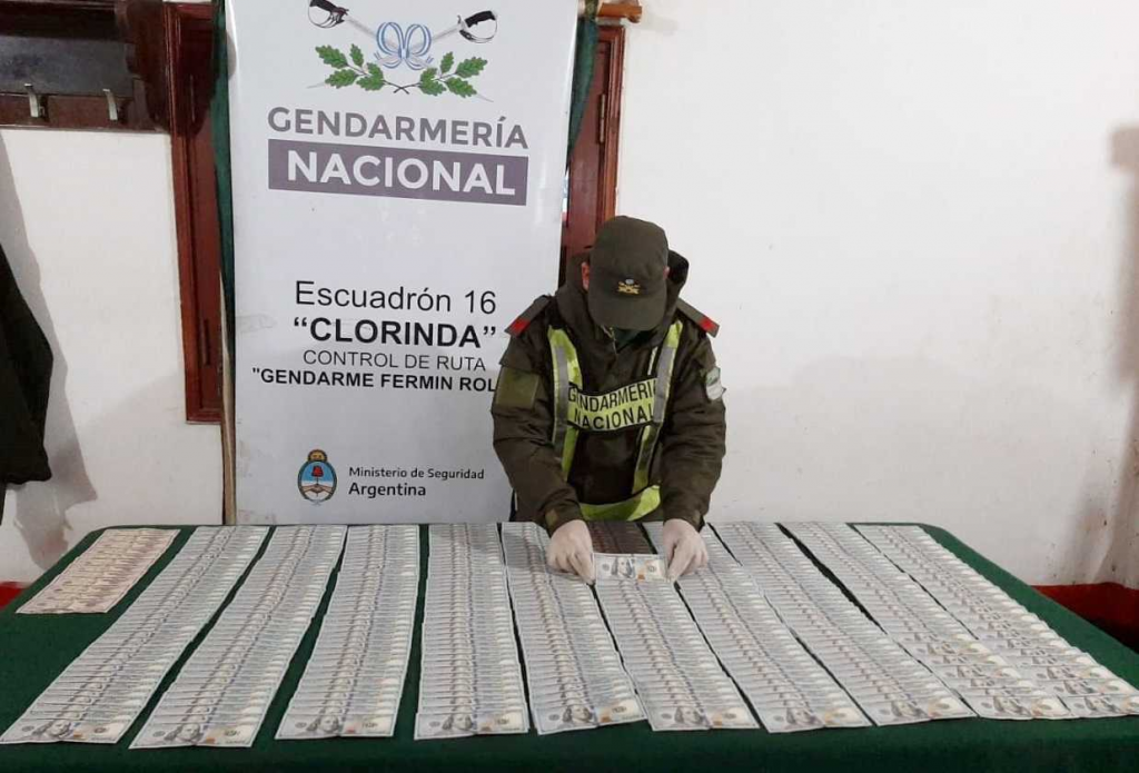 Efectivos de Gendarmería Nacional del Escuadrón 16 “Clorinda” incautaron cuatro fajos de divisas extranjeras al detener la marcha de un camión con semirremolque –ambos de bandera paraguaya- que viajaban desde Itá Enramada, Paraguay, con destino a la ciudad costera de Iquique, Chile. El operativo se realizó durante un control vial sobre la ruta nacional 11, a la altura del kilómetro 1286.