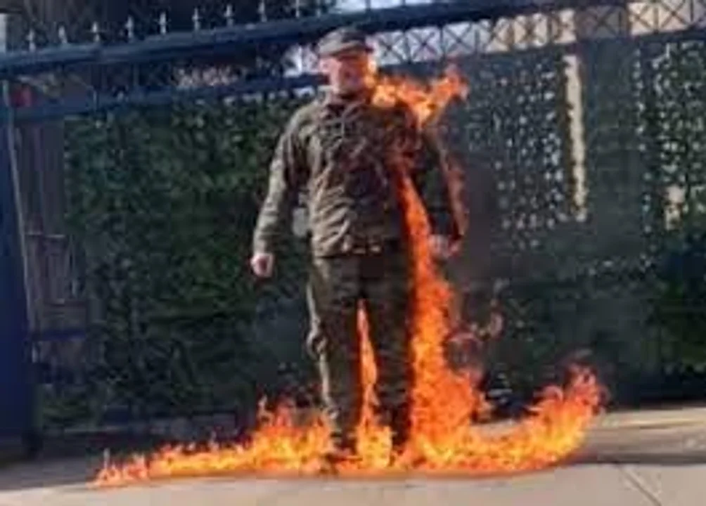 A continuación, se roció con un líquido transparente y se prendió fuego al grito de "Palestina libre", informó el Times.