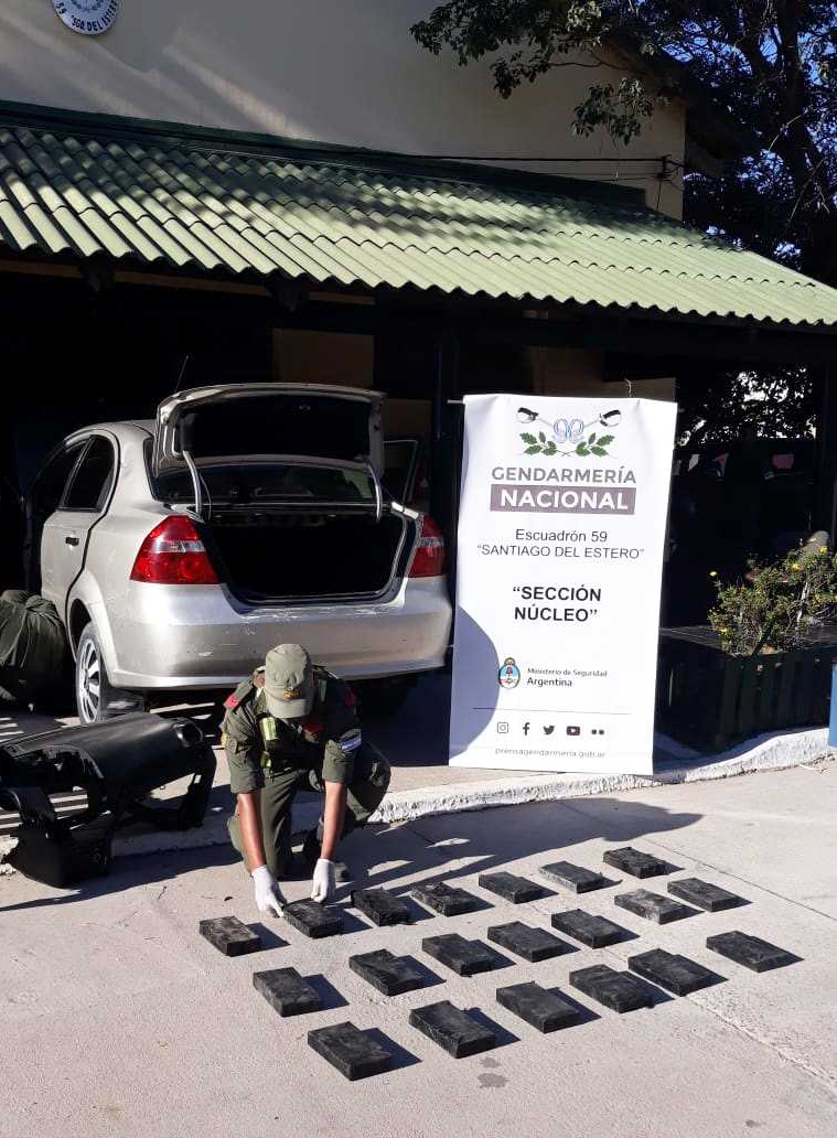 Efectivos del Escuadrón 59 “Santiago del Estero” de Gendarmería Nacional realizaban ayer controles sobre la ruta nacional 34, a la altura del kilómetro 779 (localidad de Pozo Hondo) cuando observaron la aproximación de un automóvil Chevrolet Aveo. Al detener la marcha del vehículo, personal de la Fuerza visualizó que el conductor, quien circulaba desde la provincia de Jujuy hacia Buenos Aires, presentaba un marcado estado de nerviosismo.