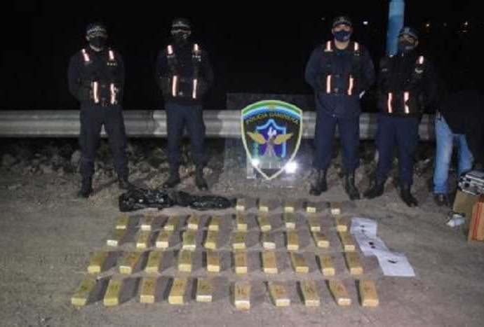 Drogas Peligrosas realizó las pruebas de campo y confirmó que se trataba de cannabis sativa (marihuana). Incautaron 45 panes de droga en el puesto caminero de Puerto Antequera.