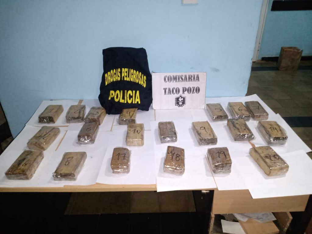 El paraje Santa Cruz, ubicado sobre el camino rural N° 20 de la localidad de Taco Pozo, fue escenario ayer de un gran secuestro de marihuana que fue abandonada por dos personas al descubrir que la policía estaba cerca de ellos.