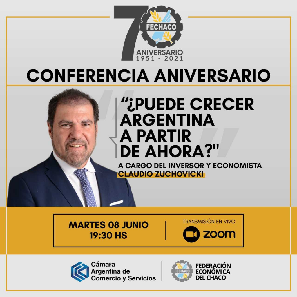 En el marco de las actividades previstas por su 70º aniversario, la Federación Económica del Chaco invita a la conferencia virtual "¿Puede crecer Argentina a partir de ahora?", a cargo del licenciado Claudio Zuchovicki.