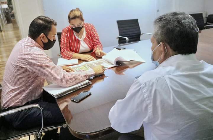 La intendente Magda Ayala y el secretario de Hacienda, Juan Zacarías, mantuvieron una reunión con el presidente de Lotería Chaqueña, Gabriel Lemos, para gestionar y planificar la construcción de un importante polideportivo, hasta el momento inexistente en la ciudad portuaria.