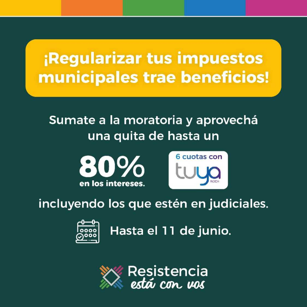 Este viernes 11 de junio vence el plazo para acogerse al régimen especial de facilidades de pago que dispone Resistencia para cancelar deudas municipales, con importantes descuentos en los intereses.