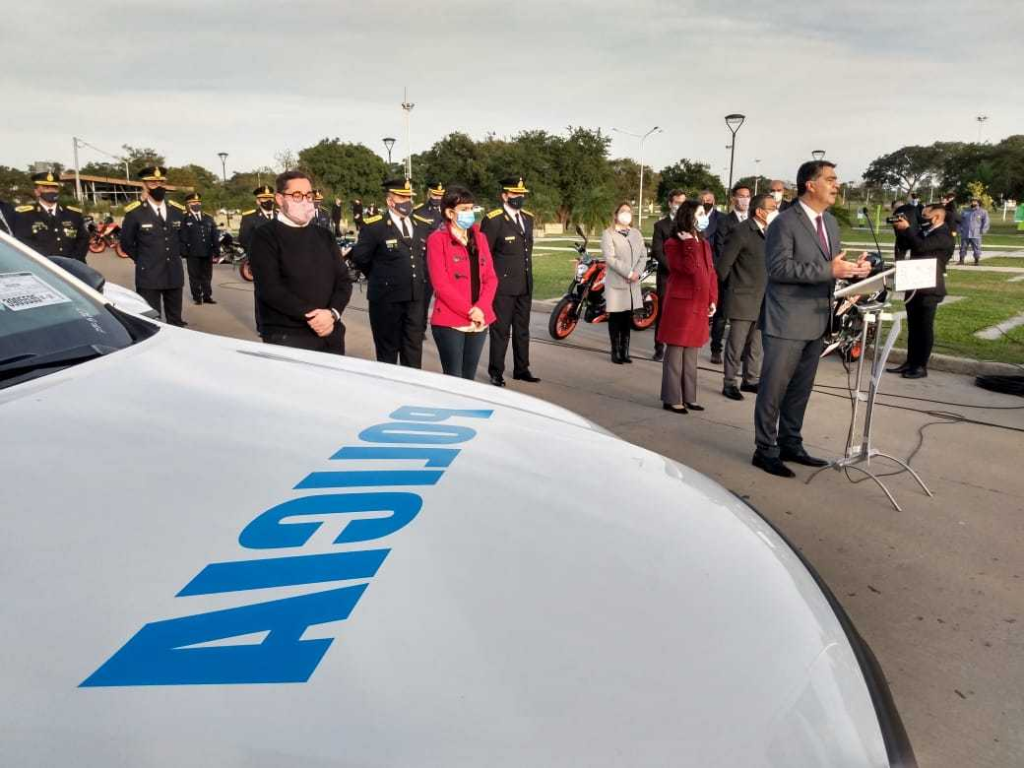El gobernador ponderó que la entrega de los nuevos patrulleros y motovehículos forma parte de un programa de incorporación de equipamiento que permite “garantizar el efectivo desplazamiento de nuestros agentes para la cobertura de prevención en materia de seguridad”.
