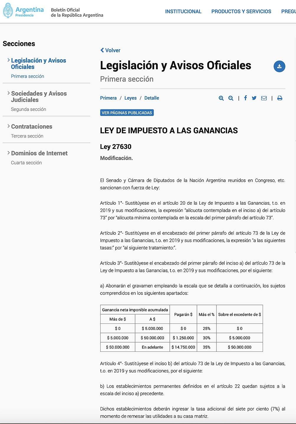 El Gobierno promulgó la Ley 27.630 que fija las nuevas escalas de Ganancias para las empresas, a través del Decreto 387/2021 publicado hoy en el Boletín Oficial.