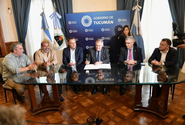 La Provincia firmó este martes un acuerdo salarial con la Unión de Gremios Estatales (UGE) y el Sindicato de Trabajadores de la Vivienda de Tucumán (Sitravi). El acto estuvo encabezado por el gobernador Osvaldo Jaldo, los ministros de Gobierno y Justicia, Regino Amado, y de Economía y Producción, Daniel Abad.