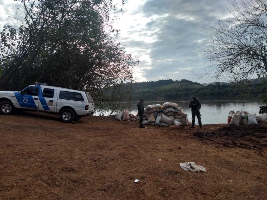 El primer procedimiento ocurrió en El Soberbio, a la altura del kilómetro 1.148 del río Uruguay, en donde personal de la fuerza que patrullaba la zona fronteriza, halló abandonadas en la orilla, 79 bolsas con granos de soja, con un peso cercano a los 4.000 kilogramos.