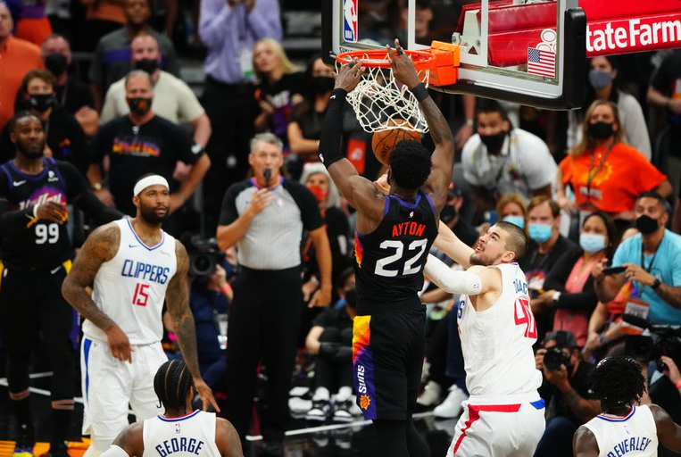Cuando restaban 0.9 décimas en el reloj, DeAndre Ayton completó una espectacular volcada para los Suns, que se pusieron 2-0 en las finales de la Conferencia Oeste ante Los Ángeles
