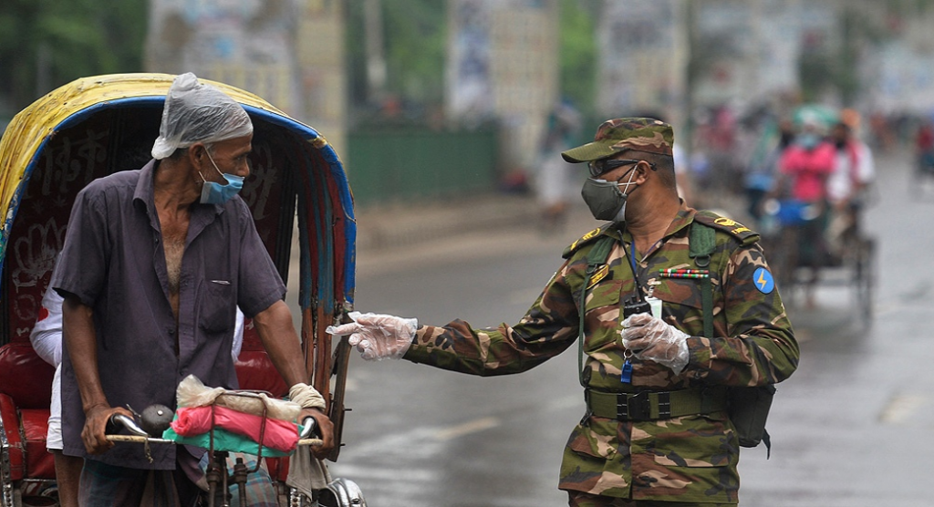 El Ejército y la policía de Bangladesh fueron desplegados en las calles de las principales ciudades con órdenes de evitar que la gente salga de casa, salvo para emergencias o para comprar bienes de primera necesidad.