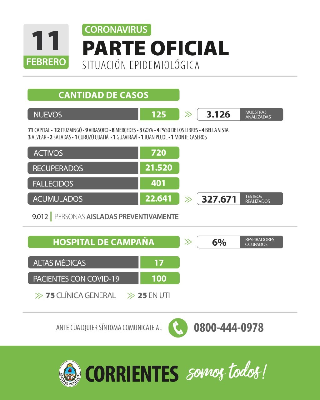 El Gobierno de Corrientes informó que la provincia superó los 400 muertos por coronavirus. Lo dio a conocer a través del parte oficial de este jueves 11 de febrero.