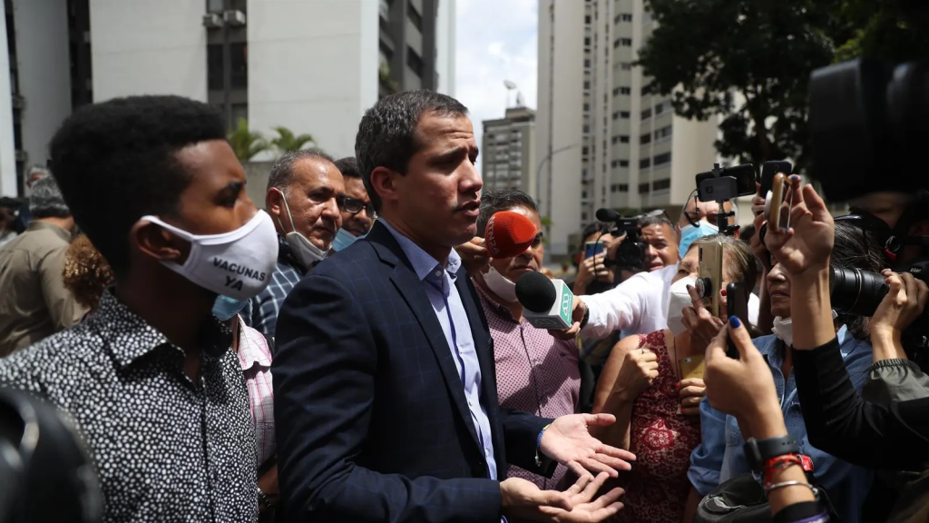 El líder opositor venezolano Juan Guaidó apareció este lunes, libre, en la puerta de su domicilio, poco después de que su esposa, Fabiana Rosales, denunciara que Funcionarios del grupo élite (FAES) de la Policía se encontraban en su residencia para detenerlo.