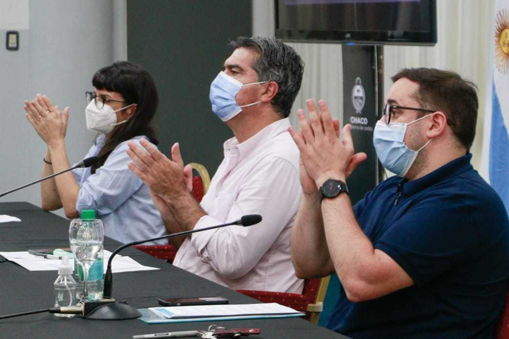 En la presentación, el gobernador y la vicegobernadora estuvieron acompañados por el ministro de Planificación, Economía e Infraestructura, Santiago Pérez Pons. En tanque que por zoom, participaron la ministra de Desarrollo Social de la provincia, María Pía Chiacchio Cavana, el secretario de Municipio del Chaco, Rodrigo Ocampo; e intendentes de localidades alcanzadas por el programa.