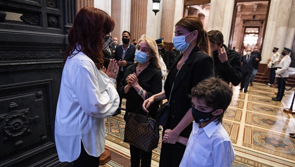 El cortejo fúnebre fue recibido en el Congreso por la vicepresidenta y presidenta del Senado, Cristina Fernández de Kirchner, quien acompaña a la exesposa delexmandatario fallecido, Zulema Yoma, su hija Zulemita, su hermano Eduardo y sus nietos.