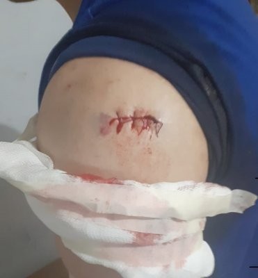 Rápidamente, el Cabo fue trasladado al Hospital donde presentó una “herida punzante de aproximadamente 5 cm de longitud en profundidad afecta hasta pleno muscularen cara interna tercio medio de brazo izquierdo, herida punzo cortante de 3 cm. longitud en profundidad, afecta hasta pleno muscular, en cara posterior, tercio inferior de brazo izquierdo, herida punzo cortante de aproximadamente, 3 centímetros de longitud en profundidad, afecta pleno muscular posterior ubicada en zona del brazo izquierdo”.