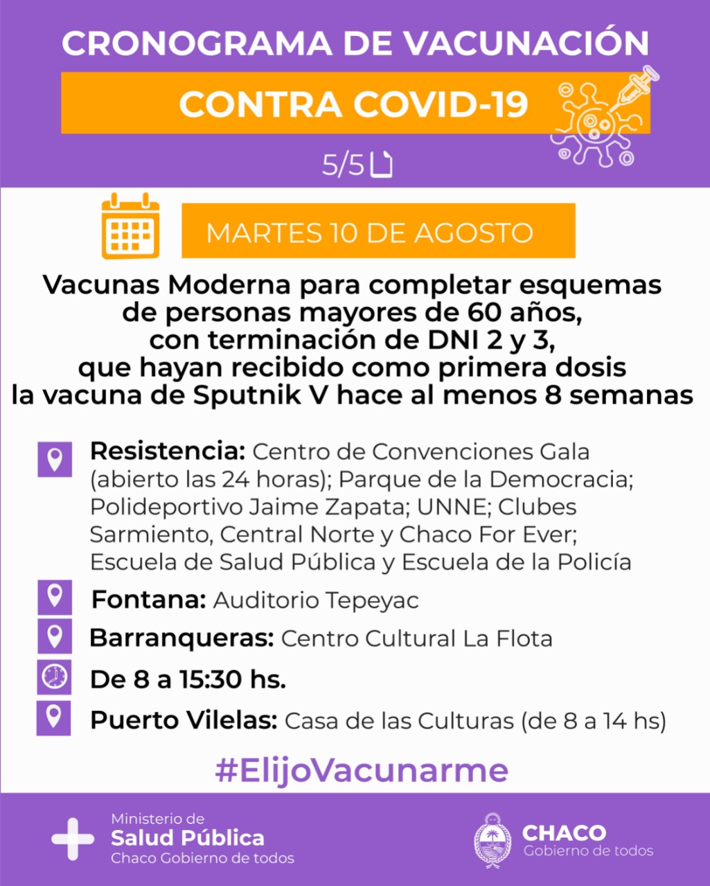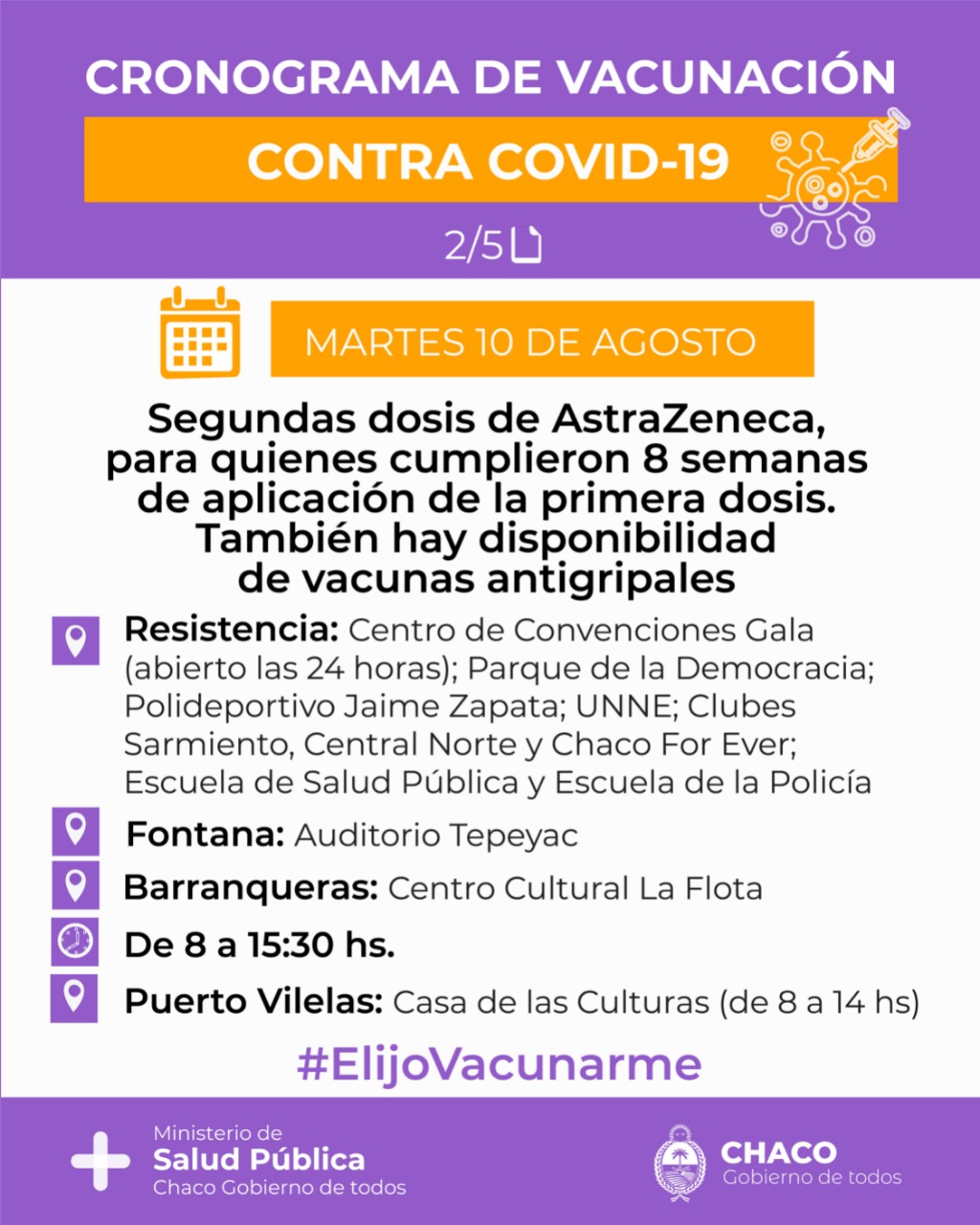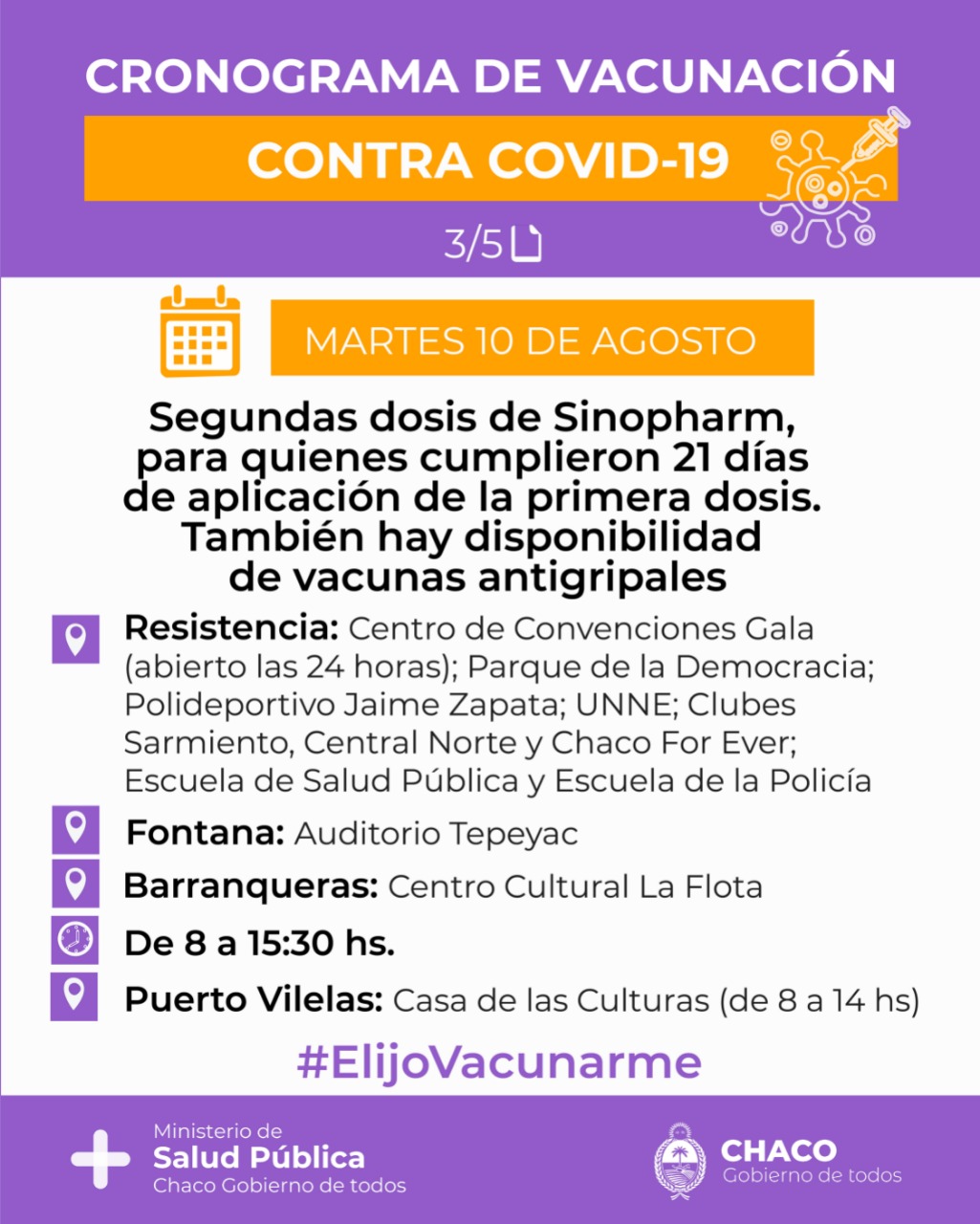 Campaña provincial de vacunación, cronograma para el 10 de agosto