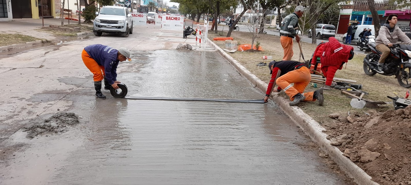 Al mismo tiempo, otro frente de trabajo intervino en Ayacucho 65 aproximadamente, donde la circulación vehicular es intensa dada la presencia de comercios, instituciones escolares y sanatorios. Allí hubo aserrado de encuadre, rotura y limpieza de bache, que quedó preparado para hormigonar.