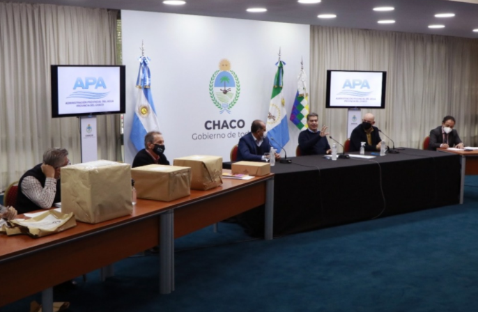El gobernador del Chaco, Jorge Capitanich, acompañado del intendente de Las Breñas, Víctor Machuca; y del presidente de la Administración Provincial del Agua, Daniel Pegoraro, realizó la mañana de ayer la apertura de licitación pública nacional para la provisión de agua corriente y agua potable en Las Piedritas.