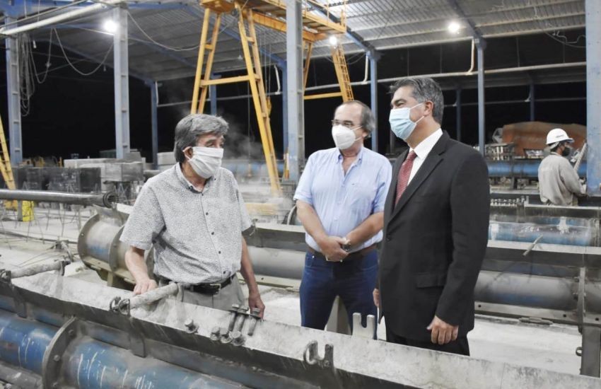 En el parque industrial de Presidencia Roque Sáenz Peña, el gobernador recorrió la planta de producción de la empresa Indupret SA, que elabora materiales premoldeados para tendidos eléctricos. Con el respaldo del Gobierno provincial la firma trabaja para ampliar sus instalaciones y sumar operarios formales.