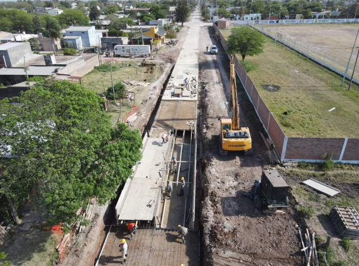 A su vez se trabaja en la construcción del desagüe principal, que estará formado por un conducto rectangular de hormigón armado sobre la calle Vázquez entre las calles Goitía y Moreno, entre las calles Moreno y Sáenz Peña, y desde la calle Sáenz Peña hasta atravesar la avenida Alem, continuando hasta la calle 10 Este donde finalizará con un cabezal de descarga sobre el Canal Nº 1.